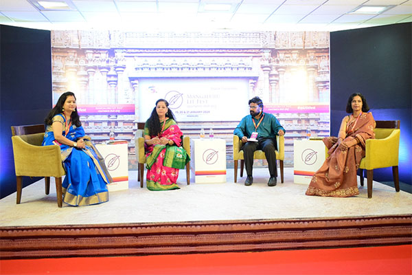 20-01-2024Audi 1 – Session 2 : 11.00 am “Once a Fauji, always a Fauji”- Major Rama Sharma. The second session of the Mangaluru LIT Festival organized by Barath Foundation in collaboration with Mythic Society. The panelists for the session were Capt. Sajita Nair, Lt Col Ankita Srivastava and Maj Rama Sharma. The moderator for was