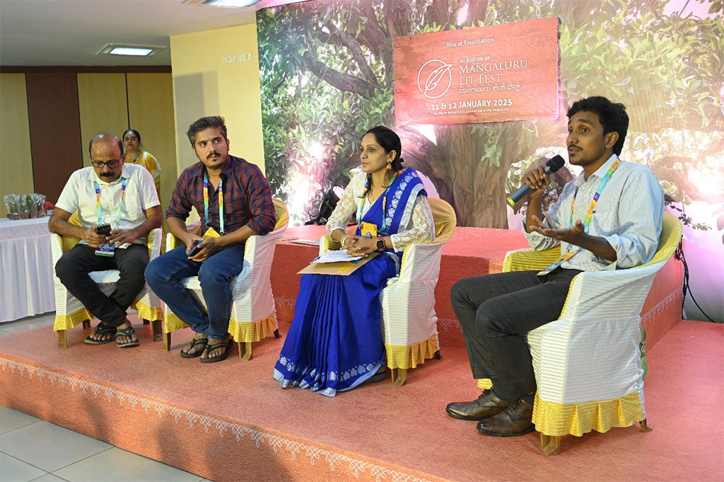 11-01-2025Day 1 | Audi 3 – Session 5 : 5.00 pm ಗೋಪಾಲಕೃಷ್ಣ ಕುಂಟಿನಿ, ಸ್ಮಿತಾ ರಾಘವೇಂದ್ರ, ಸಚಿನ್ ತೀರ್ಥಹಳ್ಳಿ ಮತ್ತು ವಿಷ್ಣುಧರನ್ ಮಂಗಳೂರು ಸಾಹಿತ್ಯದ 7ನೇ ಆವೃತ್ತಿಯ ಅಂಗವಾಗಿ ಕಥಾ ಓದು ಕಾರ್ಯಕ್ರಮವು ಸಾಹಿತ್ಯಪ್ರೇಮಿಗಳಿಗೆ ಅನನ್ಯ ಅನುಭವ ನೀಡಿತು ಈ ವಿಶೇಷ ಕಾರ್ಯಕ್ರಮದಲ್ಲಿ ಮೂರು ಪ್ರಮುಖ ವ್ಯಕ್ತಿತ್ವಗಳು ಭಾಗವಹಿಸಿದರು – ಪತ್ರಕರ್ತ ಹಾಗೂ ಲೇಖಕ ಗೋಪಾಲಕೃಷ್ಣ ಕುಂಟಿನಿ, ಕಥೆಗಾರ ಸಚಿನ್ ತೀರ್ಥಹಳ್ಳಿ ಮತ್ತು ಗುರುವಂದನ ಸಾಹಿತ್ಯ ಪ್ರಶಸ್ತಿ ವಿಜೇತೆಯಾದ ಲೇಖಕಿ ಸ್ಮಿತಾ ರಾಘವೇಂದ್ರ