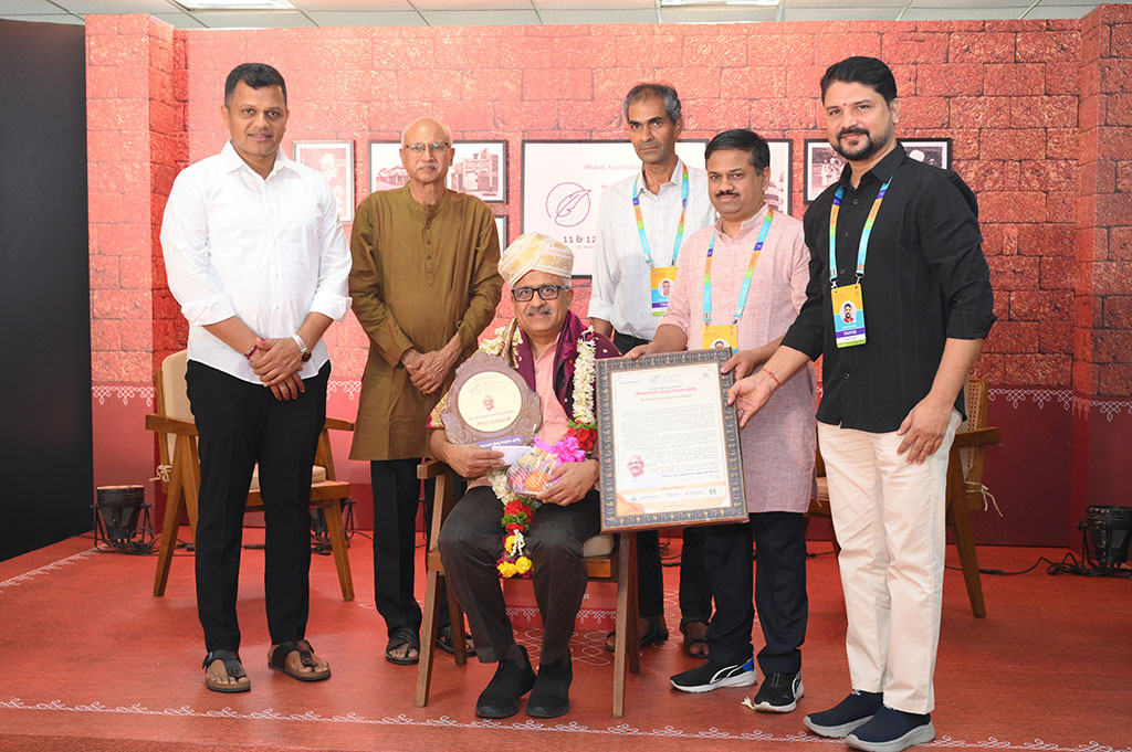 12-01-2025The 7th edition of the Mangaluru Literature Fest witnessed a momentous award ceremony honoring Dr. R. Balasubramaniam, an eminent development scholar, author, and public policy advocate, on January 12, 2025. The felicitation ceremony was organized by the Bharath Foundation, with all trustees of the Bharath Foundation presenting the honor to Dr. Balasubramaniam. RJ Abhishek hosted
