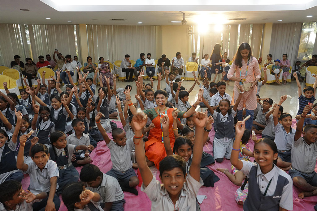 11-01-2025Audi 3 – Session 1 : 10.30 am Vandana Rai Karkaka On the occasion of Mangaluru literature fest 7th edition, ‘Chilipili-Children’s Activity’ was conducted for 80 students from Canara Kannada Medium School on January 11, 2025. Vandana Rai Karkala, teacher at Jaycees English Medium School, Karkala had hosted this event. Vandana Rai Karkala conducted activities
